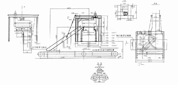 1、A向視圖中箭頭表示水泥包由B800膠帶運輸機電動轉(zhuǎn)彎溜子運到B650膠帶機。