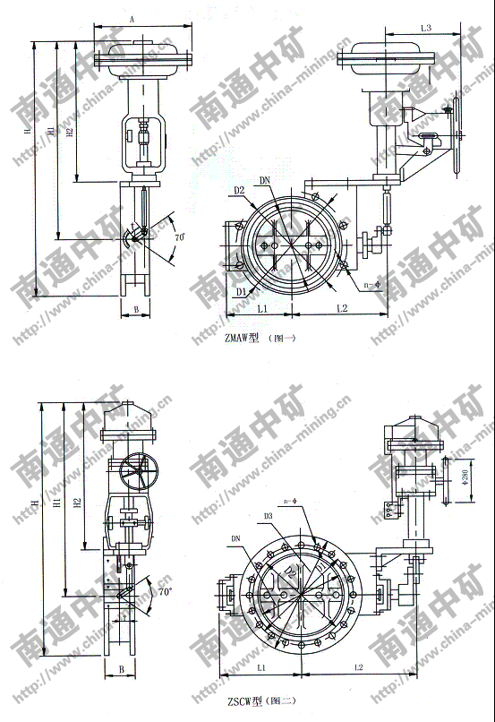 ZSCW-0.6k/b型氣動調(diào)節(jié)蝶閥外形尺寸: