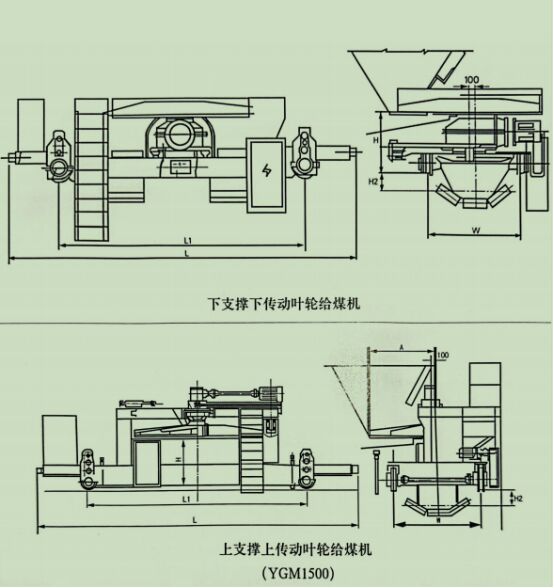 葉輪給煤機(jī)用于火力發(fā)電廠縫隙式煤溝,它可沿煤溝縱向軌道行走或停在一處將煤定量、均勻、連續(xù)地?fù)艿捷斆浩稀1竟粳F(xiàn)生產(chǎn)的葉輪給煤機(jī)按傳統(tǒng)方式分為上傳動(dòng)和下傳動(dòng),按結(jié)構(gòu)型式可分為橋式和門式,按給料方式可分為單側(cè)和雙側(cè)兩種。廣泛用于煤炭、采礦、冶金、建材、化工等行業(yè)。